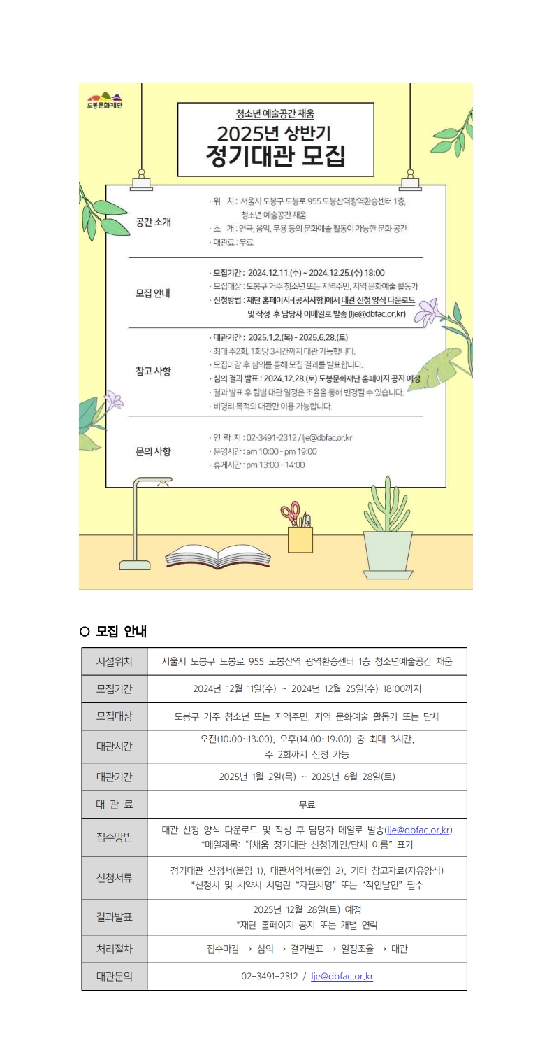 [공고] 청소년예술공간 채움 2025년 상반기 정기대관 모집 공고